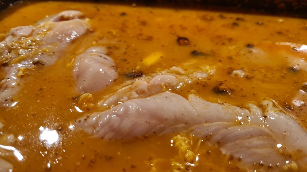 Tilsæt nu din kylling, og vend det hele godt rundt. Lad det nu trække i minimum en time, men også meget gerne længere. Vi har god erfaring med 3-4 timer for god kraftig smag af appelsin.
